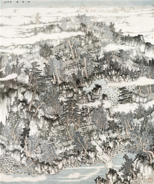 朱道平 閱江樓圖 234cm×123cm 國畫