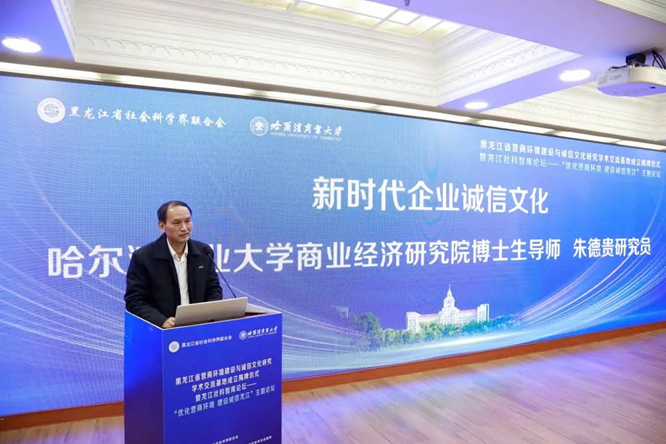 哈爾濱商業(yè)大學商業(yè)經濟研究院朱德貴研究員以《新時代企業(yè)誠信文化》為題作主旨報告。