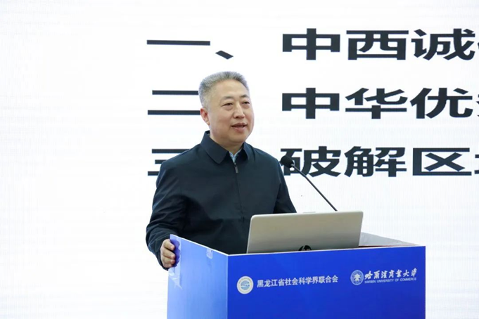 哈爾濱商業(yè)大學黨委書記孫先民致歡迎辭。他介紹了學校70余年辦學治校積累的豐富經驗和豐碩成果,指出學校充分發(fā)揮學科專業(yè)研究方向及特色優(yōu)勢,在服務社會信用體系構建、助力社會信用環(huán)境和營商環(huán)境優(yōu)化、服務新時代文明實踐、帶動全社會道德素質和文明程度提升、服務商業(yè)模式實踐與創(chuàng)新、切實擔負起服務國家戰(zhàn)略、助力龍江發(fā)展的時代使命等方面取得了成果成效。