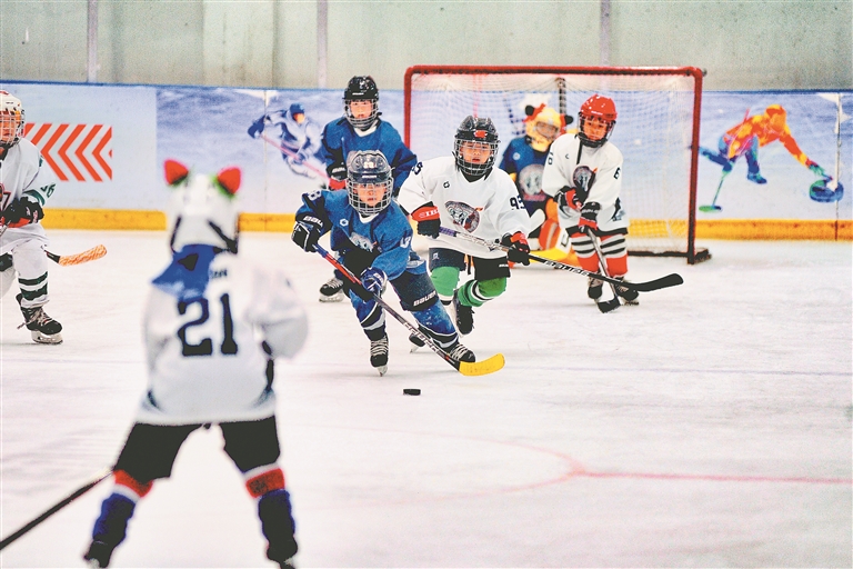 本報(bào)訊(記者蘇強(qiáng))5月3日上午,在哈爾濱市道里區(qū)一處商場內(nèi)的冰上運(yùn)動中心,兩支“萌娃”冰球隊(duì)正進(jìn)行著比賽。