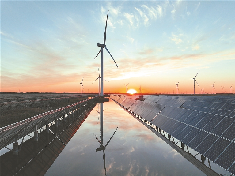 在大慶市水源路附近,光伏電池板與風機交相輝映。圖片由受訪單位提供
