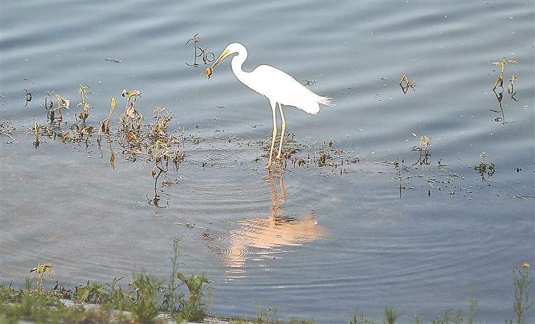 近日,哈爾濱市道里區(qū)友誼西路附近的何家溝畔,一只白鷺多次飛到這里休憩、捕魚。