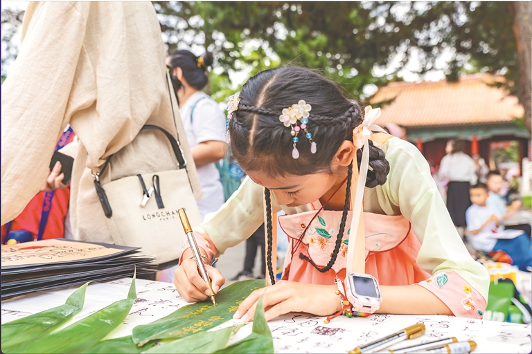 本報10日訊(記者 董云平)對古詩摘“高粽”香囊、體驗古風花鈿、沐蘭湯凈手、粽葉寫祝福、解鎖端午限量印章、領(lǐng)取端午彩絲……10日,省民族博物館融合傳統(tǒng)習俗與現(xiàn)代創(chuàng)意,開啟沉浸式“端午文廟行:粽情畫意 古韻新體驗”,多彩傳統(tǒng)民俗、非遺文化將活動現(xiàn)場節(jié)日氛圍感拉滿,帶給大家端午出游“新”體驗。