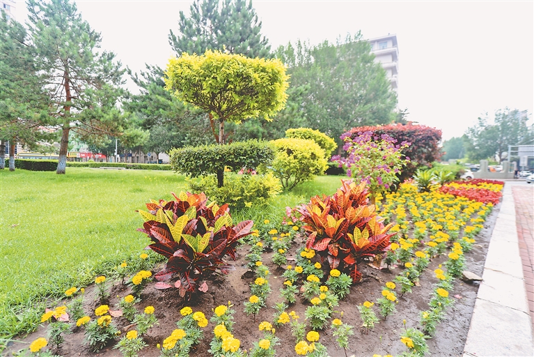近日,記者在哈市香坊區(qū)動力廣場前看到,粉紅的龍翅海棠、黃色的孔雀草競相開放,五色草、蘇鐵裝點其中,構(gòu)成了一片絢麗的花海美景。