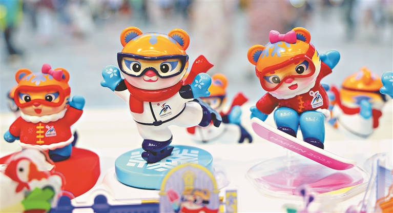 6月29日,第九屆亞冬會(huì)特許零售店哈爾濱索菲亞教堂店,游客在琳瑯滿目的貨品中挑選心儀的款式。