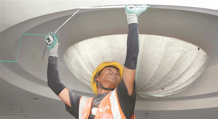 工人正在進行內部裝修。本報記者 張澍攝