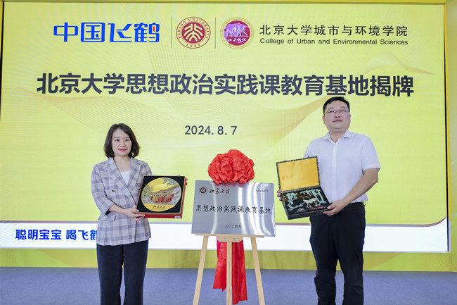 飛鶴乳業(yè)黨委副書記李玉蘋與北京大學(xué)城環(huán)學(xué)院副書記金鑫共同為北京大學(xué)思想政治實踐課教育基地揭牌
