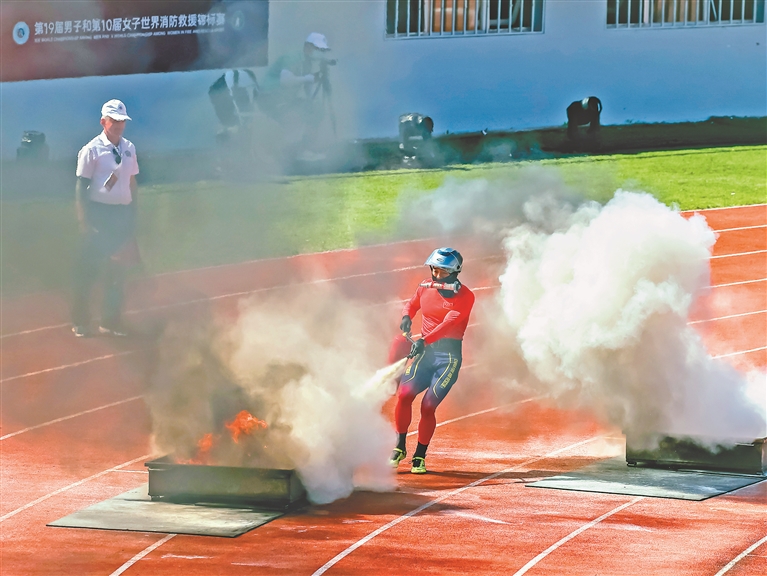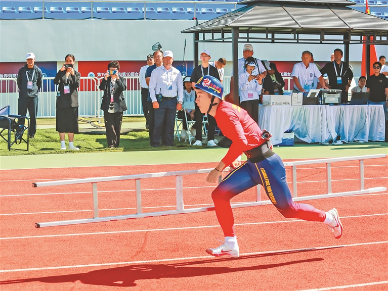 本報9日訊(記者蔡韜)9日上午,在世界消防救援錦標賽男子消防4×100米接力比賽中,中國隊跑出55秒62的好成績,獲得第一名。
