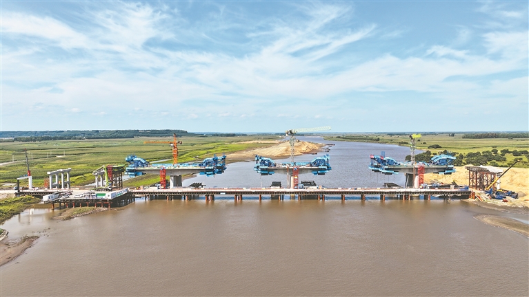 圖為建設(shè)中的呼蘭河特大橋。本報記者 吳利紅攝