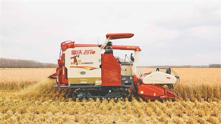 無人駕駛的收獲機進(jìn)行收獲作業(yè)。周立軍攝