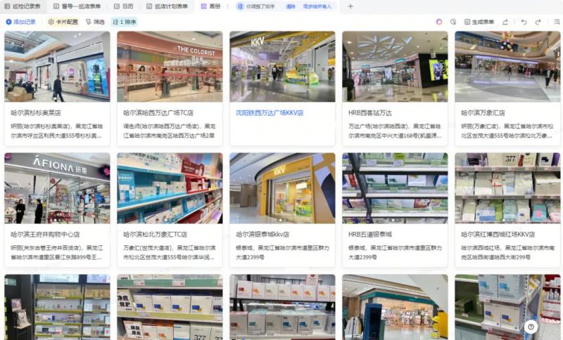 線下巡店工作能最大程度保障各終端貨品銷售質(zhì)量。過去,由于巡店工作涉及外出出差,巡店照片數(shù)據(jù)手機端無法操作整理匯總,影響問題處理時效且增加無用工作量。現(xiàn)在敷爾佳運用飛書表單移動端操作,隨時上傳巡店結(jié)果及照片,表格儀表盤視角可以查看數(shù)據(jù)并進行一段時間內(nèi)的環(huán)比、同比分析,基于數(shù)據(jù)分析做任務下達,一次巡檢從發(fā)現(xiàn)問題到整改問題的全流程都能包攬,對于每位巡檢員來說,每天至少節(jié)省2.5小時數(shù)據(jù)統(tǒng)計時間,同時更清晰的了解每個督導的外出工作情況 。此外,查貨溯源沒有系統(tǒng)的數(shù)據(jù)存檔,多個渠道數(shù)據(jù)無法同步,無數(shù)個sheet篩選查詢數(shù)據(jù),容易出錯。現(xiàn)在,運用多維表格協(xié)同操作,多個維度查看所需數(shù)據(jù),所有查貨情況能被沉淀和實時查看。