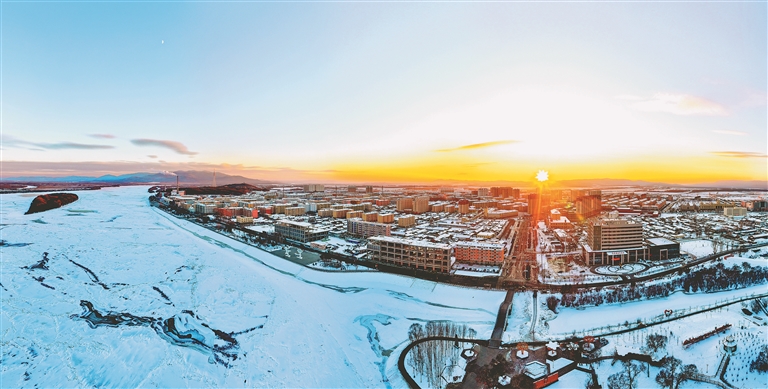 夕陽下的烏蘇里江和饒河縣城。戰(zhàn)志遠(yuǎn)攝