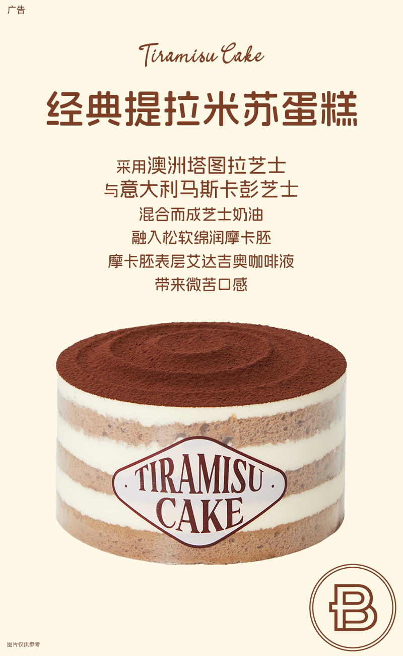 提拉米蘇,這個意大利甜品以“帶我走”之意為名,象征著溫暖與幸福。巴黎貝甜提拉米蘇蛋糕在傳統(tǒng)制作基礎(chǔ)上,融入創(chuàng)新匠心: