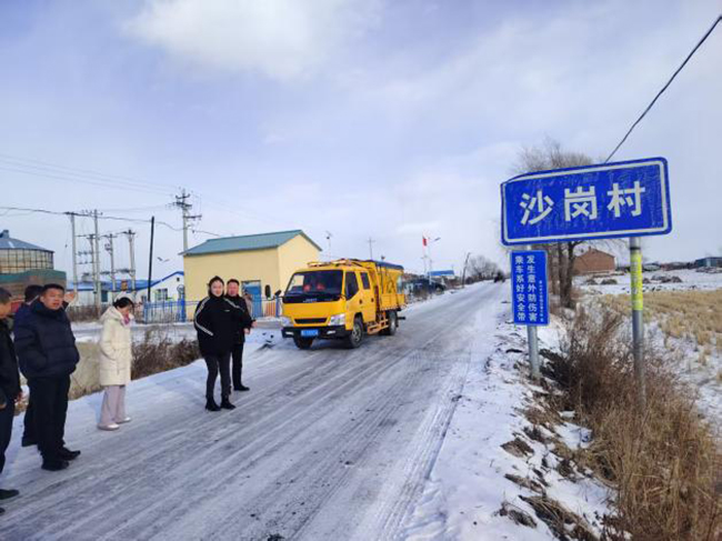 1月6日早8點,密山市交通運輸局派來專業(yè)的融雪撒布機準時到達沙崗村。各個小組長帶領(lǐng)融雪撒布機在村內(nèi)主要道路、陡坡、彎道等易結(jié)冰路段撒布融雪劑,配合人工清掃,有效加速了冰雪消融,提升了道路安全性。