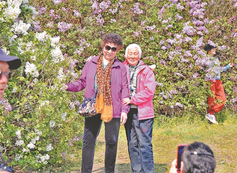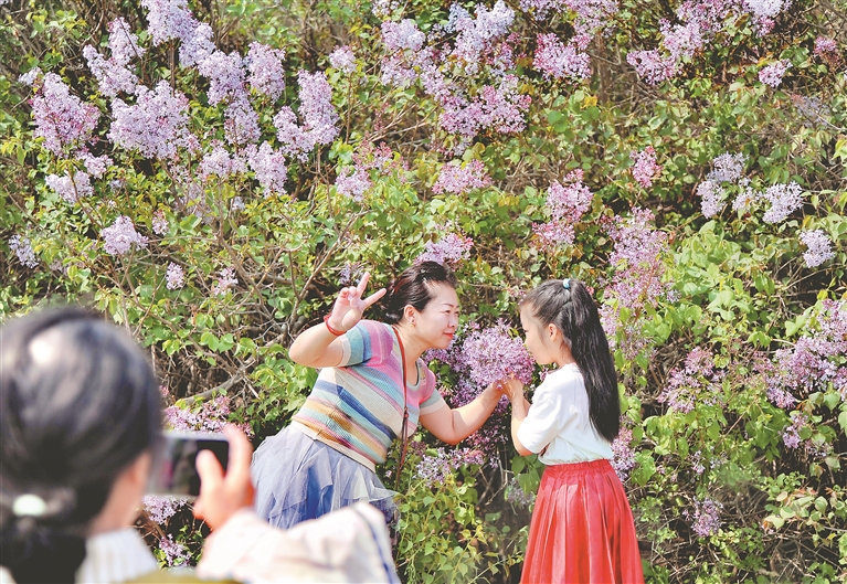 11日,陽(yáng)光明媚,空氣清新。哈爾濱市群力丁香公園內(nèi),一片片丁香花已全部盛開,白色的、紅色的、紫色的,散發(fā)著迷人的香氣。很多市民和媽媽一起來(lái)賞花、拍照,以這種方式祝福母親節(jié)日快樂(lè)。