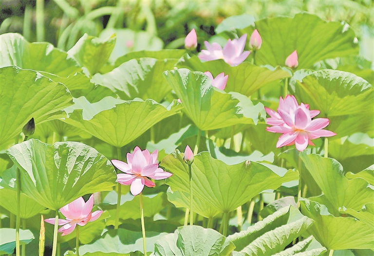 7日迎來小暑節(jié)氣,此時節(jié)也正是荷花盛放之時。哈爾濱市道里區(qū)雨陽公園內(nèi),碧綠的荷葉鋪滿池塘,含苞待放的花蕾在風中搖曳,粉色的荷花競相綻放。