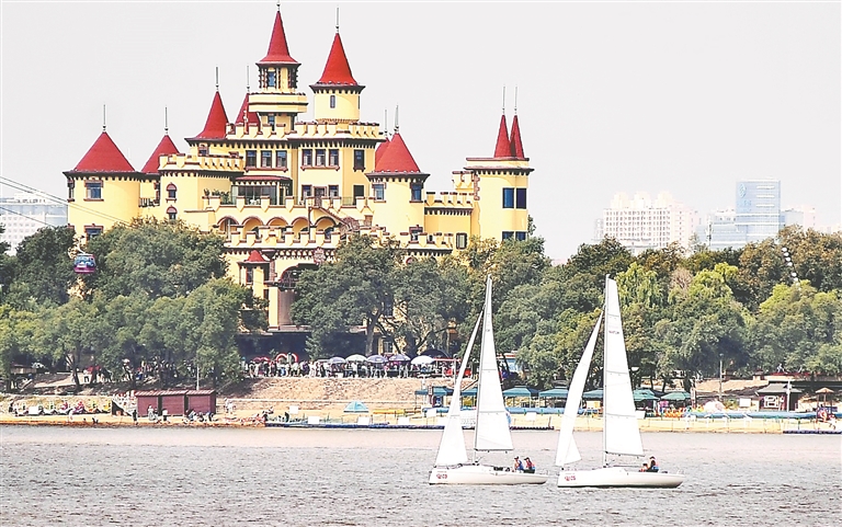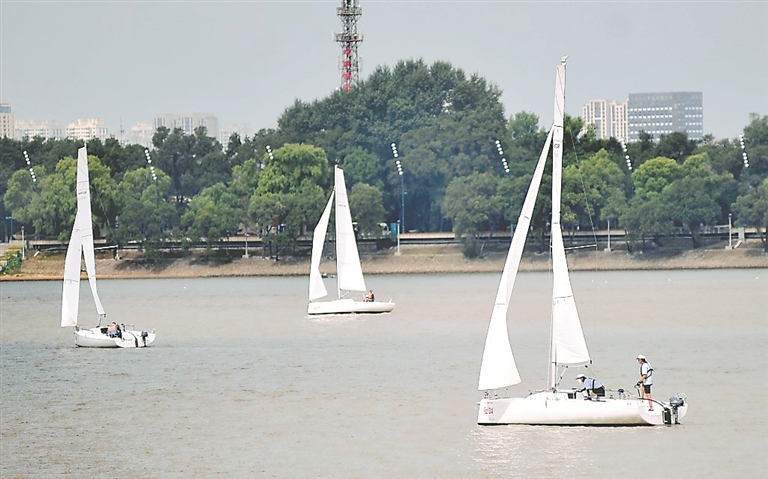 近日,哈爾濱市道里區(qū)防洪紀(jì)念塔附近的松花江畔,許多游客在觀光游玩。江面上,四五艘白色帆船劈波斬浪,來(lái)回穿行,吸引了人們的目光,一些游客用手機(jī)記錄下精彩瞬間。江邊臺(tái)階上坐滿了人,大家看著帆船表演,吹著涼爽江風(fēng),觀賞著江畔美景,舒適又愜意。