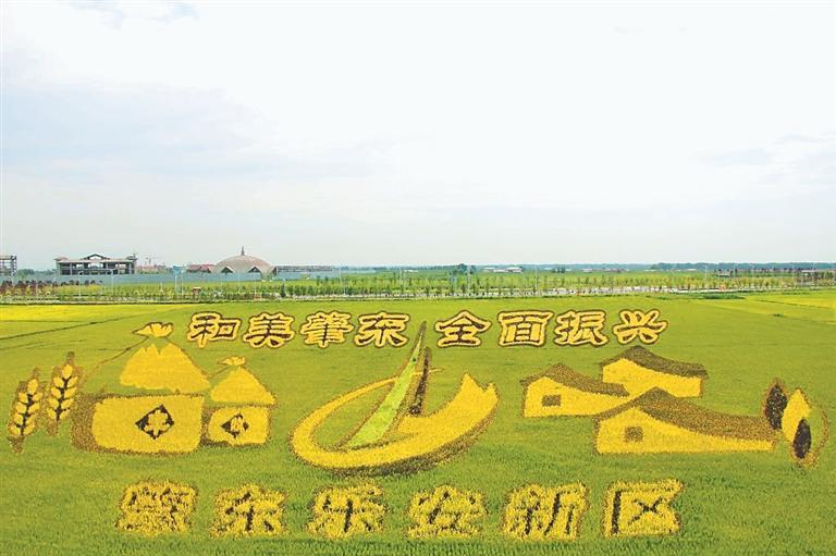 樂(lè)安新區(qū)的稻田畫從5月份開(kāi)始插秧制作,進(jìn)入7月份呈現(xiàn)出最佳觀賞效果,觀賞期將持續(xù)至10月份?!八境墒熘两瘘S色,稻田畫更漂亮,有另一種詩(shī)情畫意的自然美?!备浇l(xiāng)鎮(zhèn)五湖村曲家屯農(nóng)戶李建國(guó)說(shuō)。