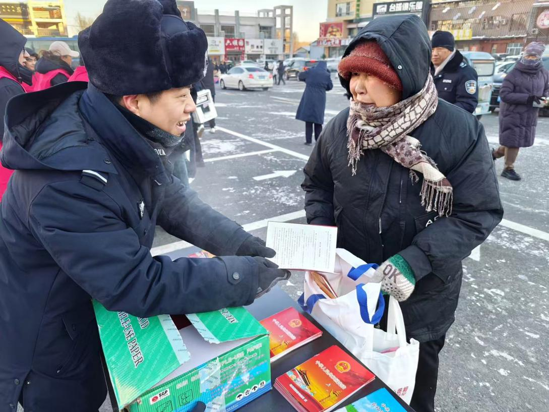 冰天雪地中,民輔警搓著凍紅的雙手仍微笑宣講,逐份發(fā)放《中華人民共和國(guó)憲法》讀本、法治折頁(yè)與防范指南?!斑@么冷的天還出來(lái)送法律知識(shí),這些知識(shí)很實(shí)用,拿回去也讓家里人學(xué)學(xué)”,市民李大爺?shù)母锌莱隽巳罕娦穆?,現(xiàn)場(chǎng)咨詢、聆聽(tīng)的群眾絡(luò)繹不絕,秩序井然。