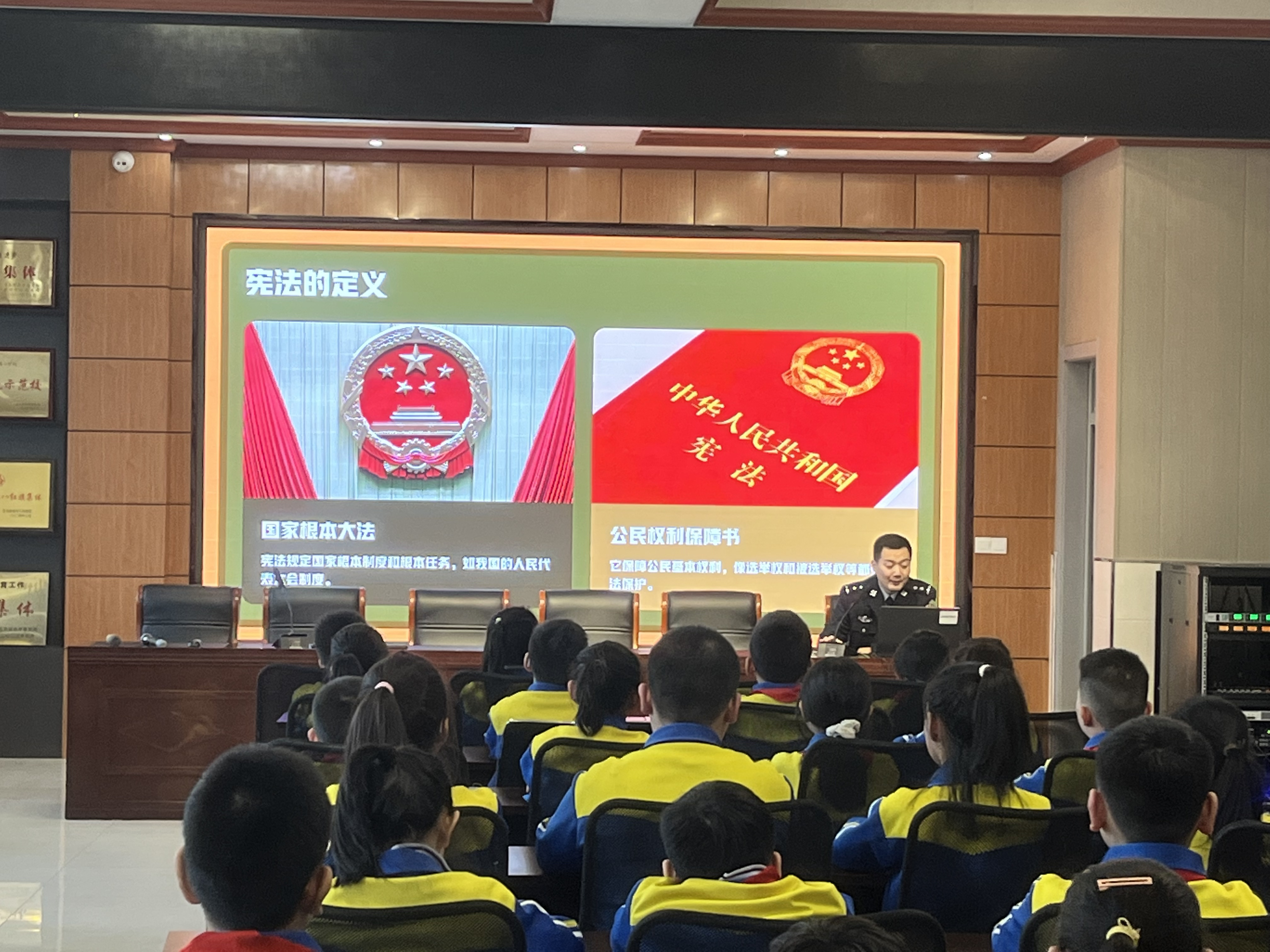 講座中,民警以通俗生動(dòng)的語言,圍繞三大核心內(nèi)容展開宣講:一是憲法基礎(chǔ)認(rèn)知,重點(diǎn)闡釋憲法作為國家根本大法的地位與作用,結(jié)合受教育權(quán)、人身安全保障、遵守校園規(guī)則等小學(xué)生熟悉的生活場景,讓學(xué)生真切感受到憲法并非“遙遠(yuǎn)的法律”,而是與自身息息相關(guān)的行為準(zhǔn)則;二是權(quán)利與義務(wù)對(duì)應(yīng),明確小學(xué)生依法享有的受教育權(quán)、人格尊嚴(yán)不受侵犯等合法權(quán)利,同時(shí)詳細(xì)講解遵守憲法法律、尊敬師長、維護(hù)公共秩序等必須履行的義務(wù),引導(dǎo)學(xué)生樹立“權(quán)利有邊界,義務(wù)須履行”的法治觀念;三是校園法治安全,針對(duì)校園欺凌、交通安全、網(wǎng)絡(luò)安全、防范陌生人侵害等問題,民警結(jié)合憲法及相關(guān)法律對(duì)未成年人的保護(hù)規(guī)定,傳授簡單實(shí)用的自我保護(hù)方法和求助途徑,著重強(qiáng)調(diào)遇到危險(xiǎn)時(shí)可及時(shí)撥打110報(bào)警電話或告知老師、家長。