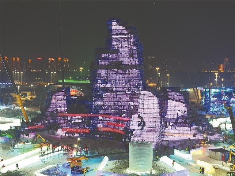作為目前全球規(guī)模最大的冰雪主題園區(qū),本屆哈爾濱冰雪大世界總用冰量、用雪量雙雙刷新紀錄。施工現(xiàn)場,上萬名來自龍江安裝集團的建設者在低溫中晝夜奮戰(zhàn),18個冰建工區(qū)、5個雪建工區(qū)同步推進,園區(qū)建設已完成70%。