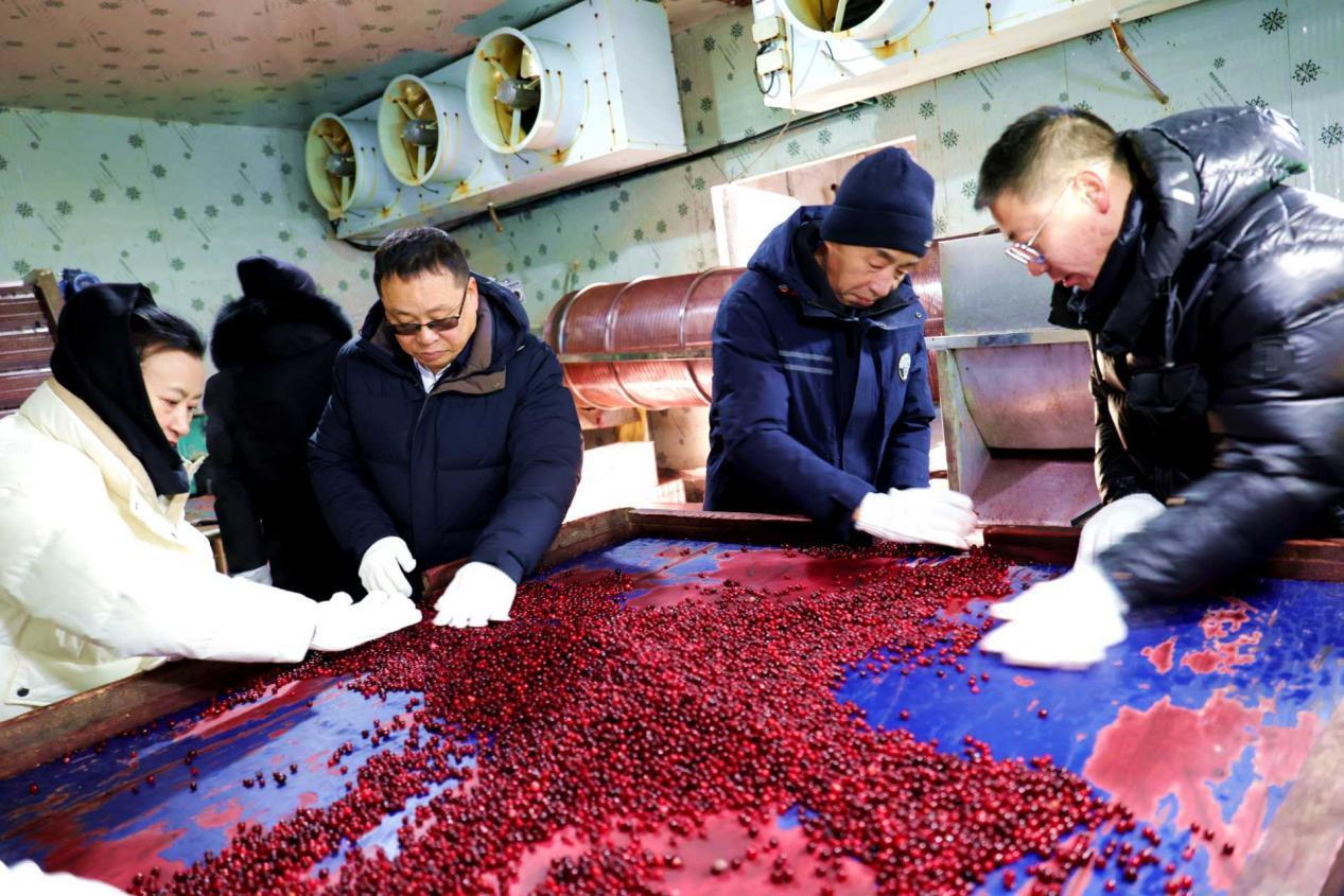 綠林林場(chǎng)干部職工在職工姚德安冷庫(kù),幫助挑選紅豆準(zhǔn)備外銷(王力 攝)