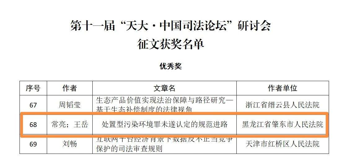 肇東市人民法院1篇論文榮獲第十一屆“天大·中國司法論壇”征文優(yōu)秀獎