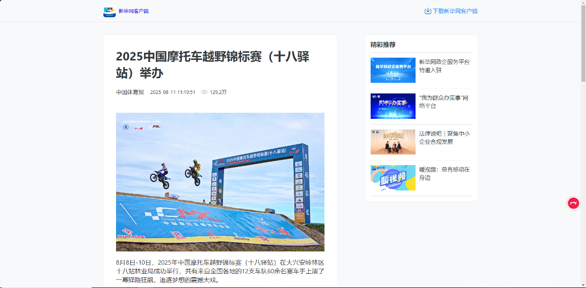 ——主題宣傳聲勢強(qiáng)勁,上央媒、亮品牌。聚焦生態(tài)建設(shè)、產(chǎn)業(yè)發(fā)展、先進(jìn)典型等,深挖工作亮點(diǎn),全媒體發(fā)稿量超3800篇,其中國家級媒體310余篇、省級媒體270余篇?!?025中國摩托車越野錦標(biāo)賽舉辦》《小熊下樹!哎喲喲下得挺快》等作品登上央視新聞、新華社、光明網(wǎng)、學(xué)習(xí)強(qiáng)國、中國綠色時報等國家級平臺;2025中國摩托車越野錦標(biāo)賽、文藝演出等活動通過新華社現(xiàn)場云等平臺直播,總點(diǎn)擊量超300萬次,“十八驛站”知名度與美譽(yù)度顯著提升。