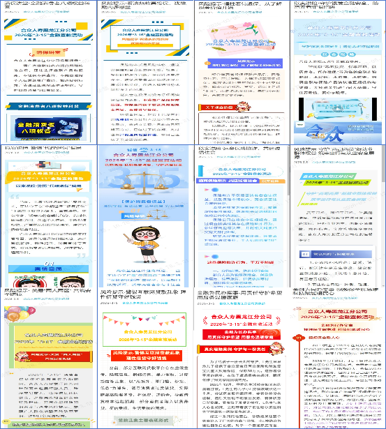 為全面貫徹落實中央經(jīng)濟工作會議、中央金融工作會議精神,深刻把握金融工作政治性、人民性,助力提升社會公眾金融素養(yǎng),幫助社會公眾增強維護自身合法權(quán)益的意識和能力。合眾人壽黑龍江分公司按照監(jiān)管部門及總公司有關(guān)工作要求,組織所轄各單位同步全面落實開展2026年“3·15”金融消費者權(quán)益保護教育宣傳活動。