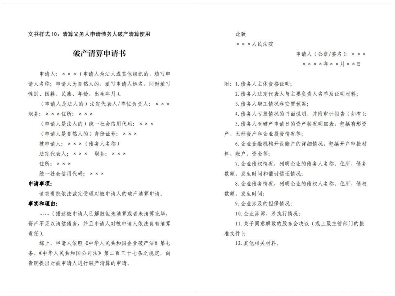 當(dāng)事人可對(duì)照范本直接填寫,有效解決因不熟悉文書格式導(dǎo)致的信息不全、表述不規(guī)范等問題,大幅降低破產(chǎn)申請(qǐng)門檻與準(zhǔn)備成本。